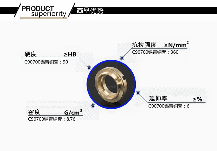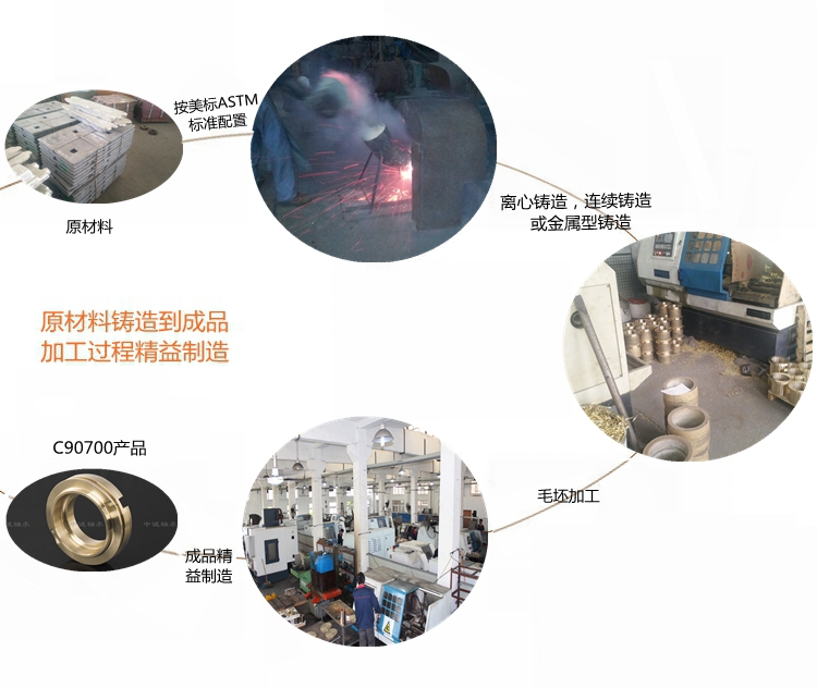 本產(chǎn)品實(shí)行ASTM標(biāo)準(zhǔn)………………………………………………… 根據(jù)客戶產(chǎn)品需求我們提供的鑄造方式有:離心鑄造,連續(xù)鑄造和金屬型鑄造?!?牌號(hào)C90700合金銅化學(xué)成分:Cu88-90 Sn10-12 Pb0.5 Zn0.5 Fe0.15 Al0.005 Si0.005 Ni0.5 Sb0.2 P1.5 S0.05…………對(duì)比國(guó)內(nèi)相近牌號(hào):ZCuSn10P1