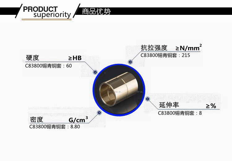 本產(chǎn)品實行ASTM標(biāo)準(zhǔn)………………………………………………… 根據(jù)客戶產(chǎn)品需求我們提供的鑄造方式有:離心鑄造,連續(xù)鑄造和金屬型鑄造。…………………………………………………………… 牌號C83800合金銅化學(xué)成分:Cu82-83.8 Sn3.3-4.2 Pb5-7 Zn5.5-8 Fe0.3 Al0.005 Si0.005 Ni1 Sb0.25 P1.5 S0.08…………對比國內(nèi)相近牌號:ZCuSn3Zn8Pb6Ni1