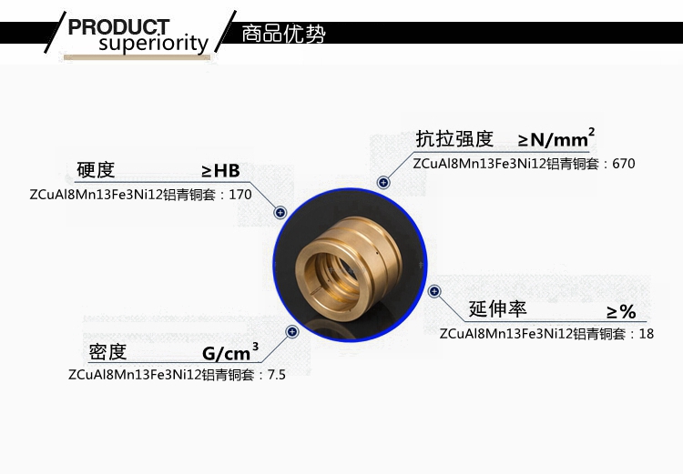 本產(chǎn)品實行GB標準………………………………………………… 根據(jù)客戶產(chǎn)品需求我們提供的鑄造方式有:離心鑄造,連續(xù)鑄造和金屬型鑄造。…………………………………………………………… 牌號ZCuAl8Mn13Fe3合金銅化學成分:Cu余量 Pb0.02 Zn0.3 Fe2-4 Al7-9 Mn12-14.5 Si0.15 C0.1