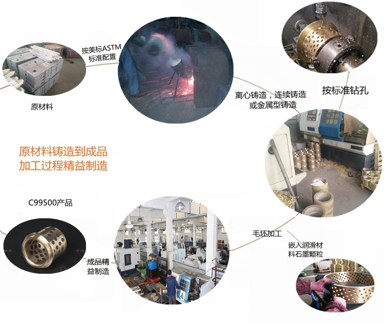 本產(chǎn)品實(shí)行ASTM標(biāo)準(zhǔn)………………………………………………… 根據(jù)客戶產(chǎn)品需求我們提供的鑄造方式有:離心鑄造,連續(xù)鑄造和金屬型鑄造?!?牌號(hào)C99500合金銅化學(xué)成分:Cu余量 Pb0.25 Zn0.5-2.5 Fe3-5 Al0.5-2 Mn0.5 Si0.5-2 Ni3.5-5.5