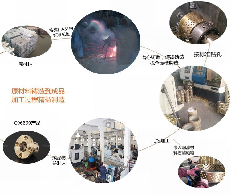 本產(chǎn)品實(shí)行ASTM標(biāo)準(zhǔn)………………………………………………… 根據(jù)客戶(hù)產(chǎn)品需求我們提供的鑄造方式有:離心鑄造,連續(xù)鑄造和金屬型鑄造?!?牌號(hào)C96800合金銅化學(xué)成分:Cu余量 Sn7.5-8.5 Pb0.005 Zn1 Fe0.5 Al0.1 Mn0.05-0.3 Ni9.5-10.5 Sb0.02 P0.005 S0.0025