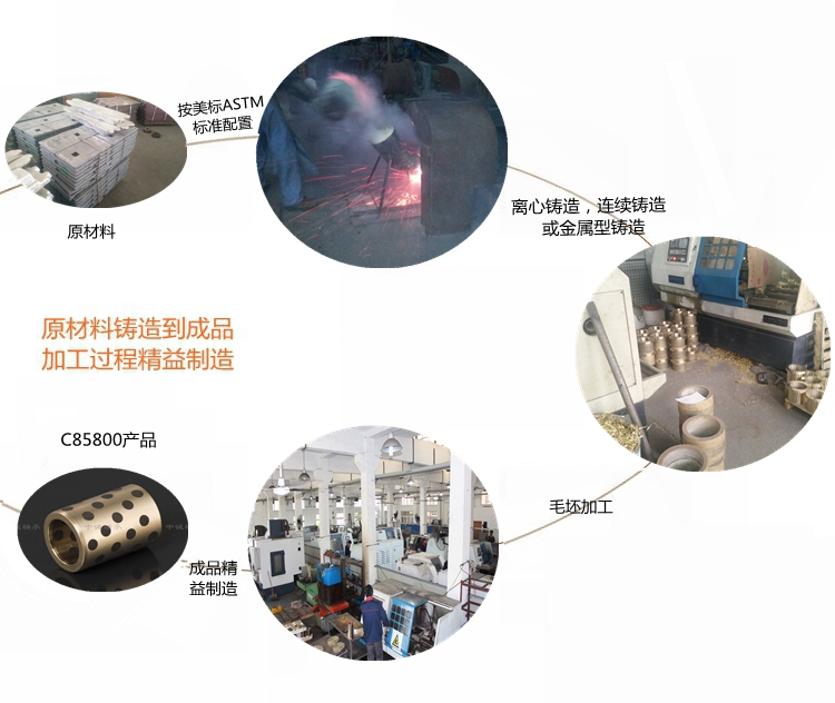 本產(chǎn)品實(shí)行ASTM標(biāo)準(zhǔn)………………………………………………… 根據(jù)客戶(hù)產(chǎn)品需求我們提供的鑄造方式有:離心鑄造,連續(xù)鑄造和金屬型鑄造。…………………………………………………………… 牌號(hào)C85800合金銅化學(xué)成分:Cu≥57 Sn1.5 Pb1.5 Zn31-41 Fe0.5 Al0.55 Mn0.25 Si0.25 Ni0.5 Sb0.05 P0.01 S0.05