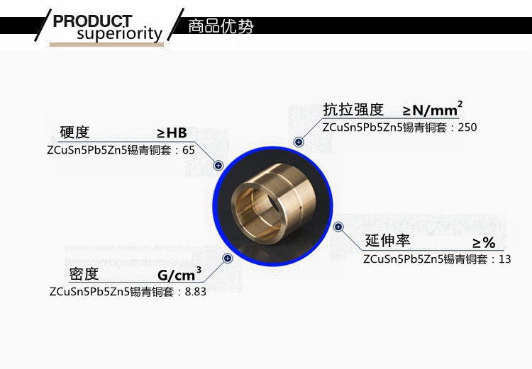本產(chǎn)品實(shí)行GB/1176-1984標(biāo)準(zhǔn)……………………………………… 根據(jù)客戶產(chǎn)品需求我們提供的鑄造方式有:離心鑄造,連續(xù)鑄造和金屬型鑄造?!?牌號(hào)ZCuSn5Pb5Zn5合金銅化學(xué)成分:Cu余量 Sn4-6 Pb4-6 Zn4-6 Fe0.3 Al0.01 Si0.01 Ni2.5 Sb0.25 P0.05 S0.1
